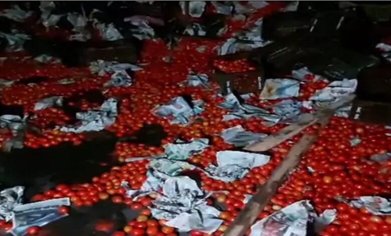 ટામેટા ભરેલા ટેમ્પો નો અકસ્માત : રસ્તા પર રેલમછેલ થયેલા ટામેટા બચાવવા ૪ કલાક નેશનલ હાઇવે બંધ
