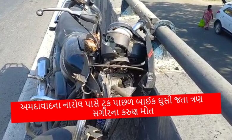 અમદાવાદના નારોલ પાસે ગયા અઠવાડિયે બાઈક અને ટ્રક વચ્ચે ભયંકર અકસ્માત સર્જાયો હતો. જેમાં બાઈક પર ત્રણ સગીર સવાર થઈને નારોલ સર્કલથી અસલાલી બ્રિજ તરફ જવાના રસ્તા પર જઈ રહ્યા હતા તે દરમિયાન બાઈક ટ્રકના પાછળના ભાગમાં જઈને અથડાઈ ગયું હતું. તેના લીધે એક સગીરનું ઘટનાસ્થળ પર જ કરુણ મોત નીપજ્યું હતું, જ્યારે બે સગીરને ગંભીર ઈજા પહોંચી હતી. આ બાબતમાં પોલીસ દ્વારા સગીરને બાઈક આપનાર તેની માતાના વિરુદ્ધમાં ગુનો દાખલ કરી તપાસ હાથ ધરવામાં આવી છે.