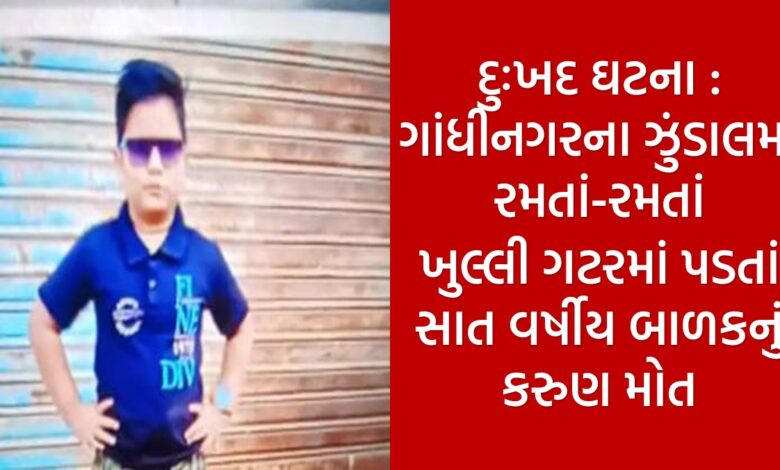 ગાંધીનગર ના ઝૂંડાલ કે ડી હોસ્પિટલ પાસેથી એક દુઃખદ ઘટના સામે આવી છે. કેમ કે, કે ડી હોસ્પિટલ પાસે રાજસ્થાન જવા માટે વાહનની રાહ જોઈને ઉભેલા માતા-પિતાની જાણ બહાર રમી રહેલા અંદાજીત સાત વર્ષીય પુત્ર ખુલ્લી ગટરમાં પડી જતા તેનું મૃત્યુ નીપજ્યું હોવાની ઘટના સામે આવી છે. જ્યારે ગાંધીનગર ફાયર બ્રિગેડની દ્વારા બાળકની લાશ બહાર કાઢવામાં આવી હતી. માતા-પિતા રાજસ્થાન જવા માટે કે ડી હોસ્પિટલ ની સામે ના હાઇવે રોડ ઉપર વાહનની રાહ દેખી રહ્યા હતા તે સમયે બાળક રમતાં-રમતાં ખુલ્લી ગટરમાં પડી ગયું હતું.