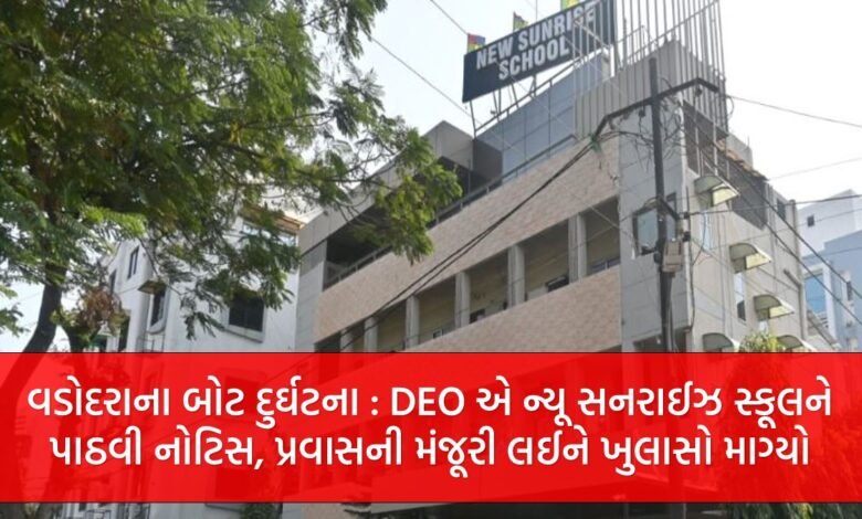 હરણી બોટ દુર્ઘટનાને લઈને સતત તપાસ હાથ ધરવામાં આવી રહી છે અને તેને લઈને સતત નવી-નવી જાણકારી સામે આવી રહી છે. ત્યારે હવે સમાચાર સામે આવ્યા છે કે, DEO દ્વારા ન્યૂ સનરાઈઝ સ્કૂલને નોટિસ પાઠવવામાં આવી છે. સ્કૂલ પાસે પ્રવાસની મંજૂરી અંગે ખુલાસો માંગવામાં આવ્યો છે. પ્રવાસ માટે કેમ પરવાનગી ન લીધી તેનો જવાબ માંગવામાં આવ્યો છે. જ્યારે અઠવાડિયામાં જવાબ આપવા માટે આદેશ આપવા આવ્યો છે. પ્રવાસ અંગે DEO કચેરીને અંધારામાં રાખનાર સામે કાર્યવાહી કરવામાં આવશે. બીજી તરફ આ તરફ દુર્ઘટના બાદ વાલીઓમાં ભયનો માહોલ ઉભો થયો છે. અન્ય શાળાના વાલીઓ બાળકોને પ્રવાસે મોકલવામાં ભય અનુભવી રહ્યા છે. અન્ય શાળાઓના પ્રવાસના આયોજનો સતત રદ્દ કરવામાં આવી રહ્યા છે.