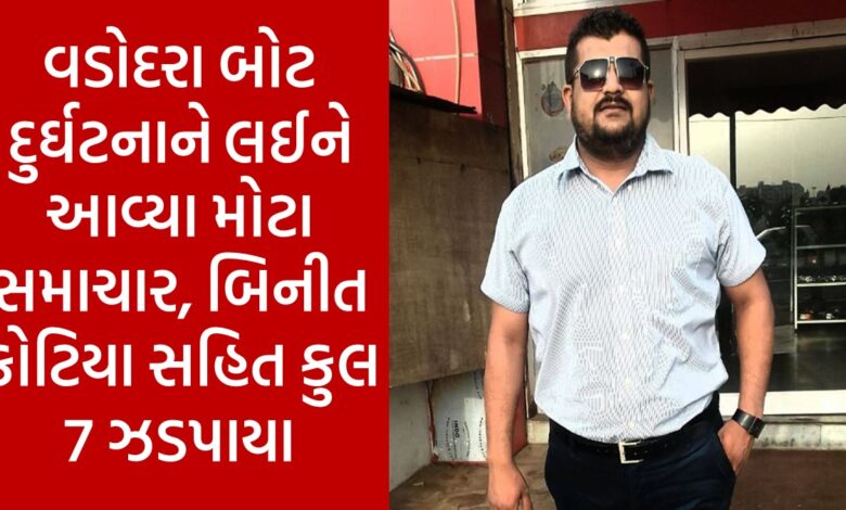 વડોદરા હરણી તળાવમાં બોટ દુર્ઘટનાને લઈને મોટા સમાચાર સામે આવ્યા છે. આ દુર્ધટનાનો આરોપી બિનીત કોટિયા ઝડપાઈ ગયો છે. SIT દ્વારા આરોપી બિનીત કોટિયાની ધરપકડ કરવામાં આવી હોવાનું સામે આવ્યું છે. બોટ દુર્ઘટનામાં અત્યાર સુધી 7 આરોપી ઝડપી પાડવામાં આવી છે. નોંધનીય છે કે, દુર્ઘટના ના મુખ્ય આરોપી પરેશ શાહ અને નિલેશ જૈન હજુ ફરાર રહેલ છે. ઘટના નાં ચાર દિવસ બાદ પણ હજુ સુધી તમામ આરોપીઓ ઝડપાયા નથી. જ્યારે કુલ 19 આરોપીઓમાંથી 12 આરોપીઓ ને પોલીસ દ્વારા હજુ શોધવામાં આવી રહ્યા છે.