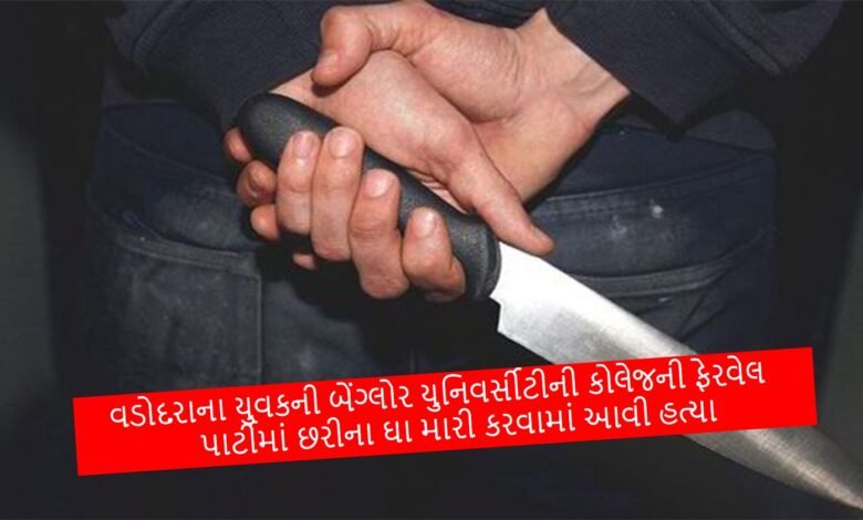 વડોદરાના યુવકને લઈને બેંગ્લોરથી મોટા સમાચાર સામે આવ્યા છે. બેંગલોરમાં આવેલી રેવા યુનિવર્સિટીમાં અભ્યાસ કરવા માટે ગયેલ વડોદરાના યુવાનને કોલેજની પાર્ટીમાં છરી વડે હુમલો કરી મોતને ઘાટ ઉતારી દેવામાં આવ્યો હોવાનું સામે આવ્યું છે. ગઈ કાલ રાત્રીના રેવા યુનિવર્સિટીમાં એક પાર્ટી ચાલી રહી હતી તેમાં બે ગ્રુપ વચ્ચે અથડામણ થઈ ગઈ હતી. તેમાં વડોદરાના 22 વર્ષના ભાસ્કર જેટીનું કરુણ મોત નીપજ્યું હતું. જ્યારે અન્ય એકને ગંભીર ઈજા પહોંચી હતી.