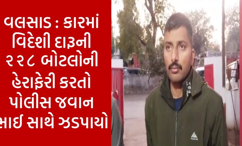 વલસાડ : કારમાં વિદેશી દારૂની ૨૨૮ બોટલોની હેરાફેરી કરતો પોલીસ જવાન ભાઈ સાથે ઝડપાયો