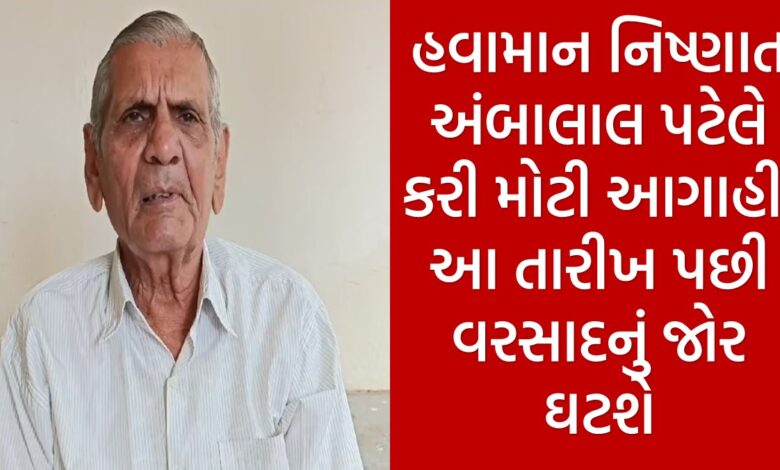 તેની સાથે ઉત્તર ગુજરાતના ઘણા વિસ્તારોમાં પણ ભારે વરસાદના લીધે જળબંબાકારની આગાહી કરી છે. આ સિવાય મધ્ય ગુજરાતમાં વરસાદનું જોર ઘટવાને લઈને આગાહી કરી છે. અંબાલાલ પટેલ દ્વારા કરવામાં આવેલ આગાહી મુજબ, દક્ષિણ ગુજરાત ના વિસ્તારોમાં વરસાદનું જોર યથાવત રહેવાનું છે.