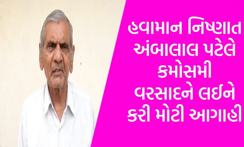 ગુજરાતમાં બે દિવસથી ઠંડીનો ફરી ચમકારો જોવા મળ્યો છે. લોકોને ફરીથી હાથ થીજવતી ઠંડી સહન કરવાનો વારો આવ્યો છે. એવામાં હવે વરસાદને લઈને આગાહી કરવામાં આવી છે. હવામાન નિષ્ણાત અંબાલાલ પટેલ દ્વારા વરસાદને લઈને મોટી આગાહી કરવામાં આવી છે. તેમના દ્વારા મહિનાના અંતમાં કમોસમી વરસાદની આગાહી કરવામાં આવી છે.