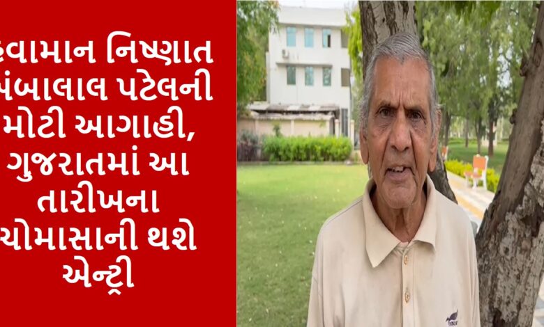 રાજ્યમાં ઉનાળાની શરુઆત થઈ ગઈ છે પરંતુ તેની સાથે કેટલાક વિસ્તારોમાં કમોસમી વરસાદ પણ જોવા મળી રહ્યો છે. તેના લીધે લોકોને ડબલ ઋતુનો અહેસાસ થઈ રહ્યો છે. એવામાં હવામાન નિષ્ણાત અંબાલાલ પટેલ દ્વારા વરસાદને લઈને મોટી આગાહી કરી છે. તેમના દ્વારા ચોમાસે લઈને આગાહી કરવામાં આવી છે.